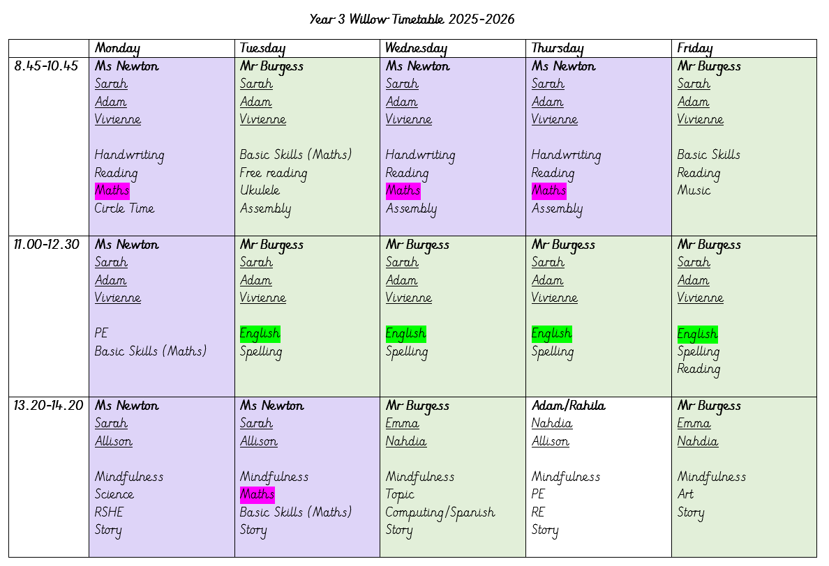 PE will be taught by Adam on Mondays and Thursdays.
