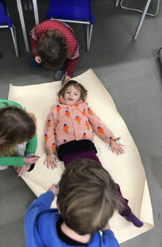 We started our topic off with finding out how many body parts we already knew. We drew around our friends and labelled as many as we knew. Turned out… we knew a lot!
