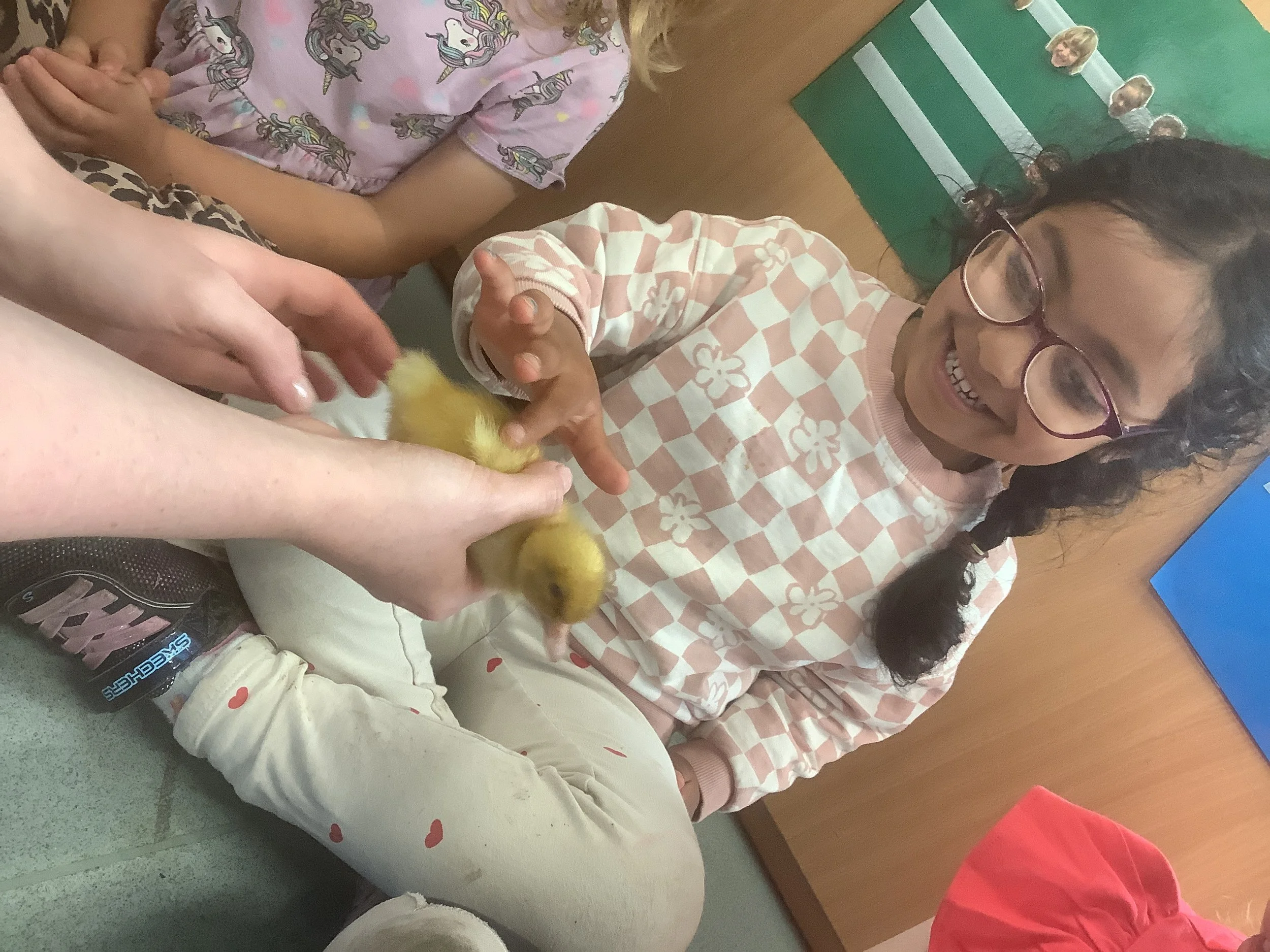 Oak hatched 5 little ducklings in the Summer term. We watched them sleeping under the heat pad and learning how to swim! We loved having Bunny, Eggy, Rosie, Sparkle and Jack.